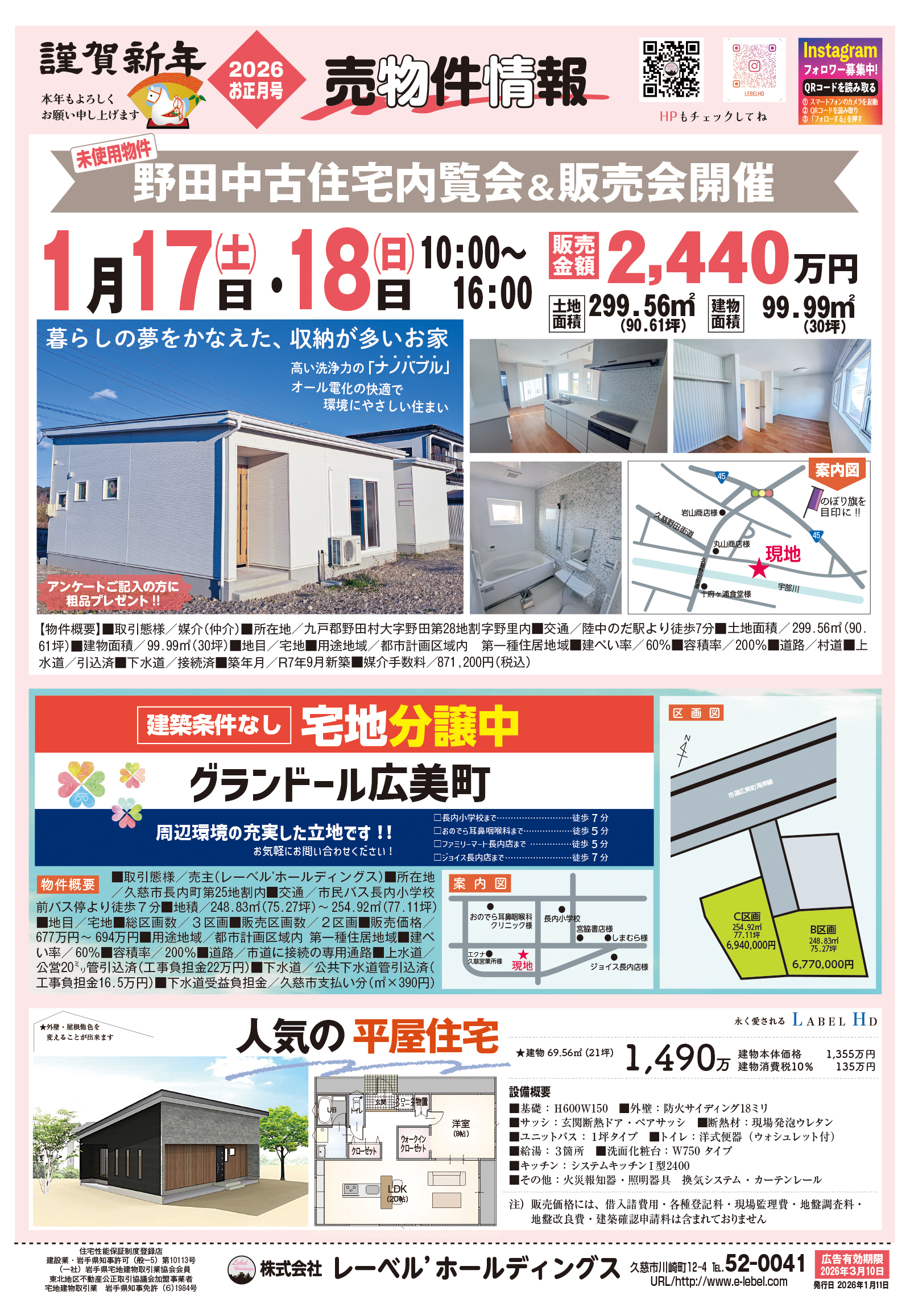 2026.01.09 / 最終更新日時 : 2026.01.09 レーベル’ホールディングス お知らせ 売物件情報 お正月号 2026.1.11売物件情報お正月号を発行いたします。チラシは弊社事務所でもお渡しできます。ご来店お待ちしております。